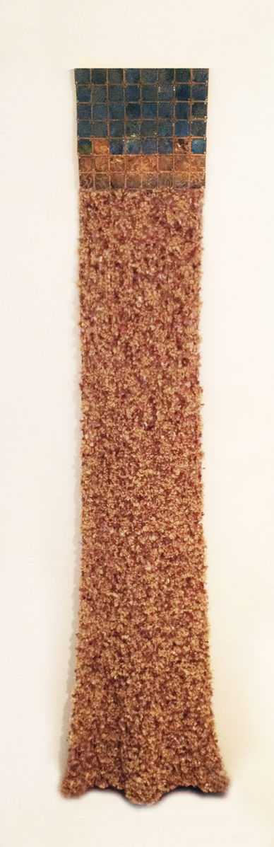 The artist's current body of work has moved away from her earlier focus on wheel-based pieces embellished with found objects. Van Stolk is now known for her sculptural garment forms produced in her studio, most notably the beautiful 'kimono' wall sculptures which employ a sophisticated colour palette, stylized silhouettes and a highly decorated surface.